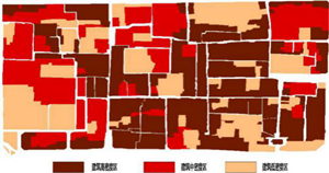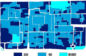 北院門歷史文化街區(qū)的建筑大都建設(shè)較早,其中鼓樓、化覺巷清真寺等國(guó)家級(jí)文保單位有600多年的歷史,其他文保大都為清代以前建筑,都有百年以上歷史,文保建筑和歷史建筑大都為磚木結(jié)構(gòu),其他建筑多為磚木、磚混結(jié)構(gòu),都有幾十年的建設(shè)歷史,民宅建筑由于歷史文化街區(qū)保護(hù)的原因建設(shè)管控較嚴(yán),無(wú)法新建,大多都是多次加蓋,建筑結(jié)構(gòu)不合理,建筑耐火等級(jí)低。北院門歷史文化街區(qū)核心保護(hù)區(qū)范圍內(nèi)建筑大約70%為三級(jí)、四級(jí)耐火等級(jí);北院門歷史文化街區(qū)建設(shè)控制地區(qū)相對(duì)具備建筑改造條件,建筑翻建、維修率相對(duì)較高,建筑的耐火等級(jí)、防火間距、防火分隔、消防車通道、消防設(shè)施等較核心保護(hù)區(qū)條件好,建筑大約50%為為三級(jí)、四級(jí)耐火等級(jí)。雖然自上世紀(jì)90年代開始,西安市政府對(duì)該地區(qū)進(jìn)行了多次的修繕工作,尤其是1997年中國(guó)政府與挪威聯(lián)合政府合作,啟動(dòng)了西安回民歷史街區(qū)保護(hù)項(xiàng)目,大大改善了該歷史文化街區(qū)的建筑質(zhì)量,但是由于歷史文化保護(hù)、建筑產(chǎn)權(quán)、民俗等原因,整體街區(qū)建筑耐火等級(jí)較低,火災(zāi)風(fēng)險(xiǎn)較大。從文化價(jià)值分布來(lái)看,文化價(jià)值越高的區(qū)域,由于歷史文化保護(hù)的原因,建筑耐火等級(jí)越低,建筑改造控制越嚴(yán)格,公共消防基礎(chǔ)設(shè)施提升越困難,火災(zāi)危險(xiǎn)性越大。