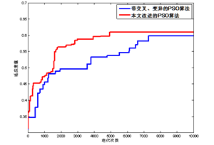 為了更直觀看出加入聚類算法的優(yōu)勢,本文對交叉粒子群算法和聚類融合交叉粒子群算法收斂情況進行比較,結(jié)果如圖9所示(粒子數(shù)為3000,迭代次數(shù)為10000,聚類數(shù)為10)。
