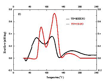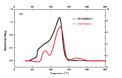 圖 5 混合比例為 3:1 的 UP 與 MEKPO(a)或 TBPO(b)的 DSC 圖
