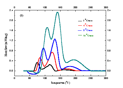 (2)第二組:比例為 3:1 的 UP 與硬化劑在 2,4,8 和 16oC/min的升溫速率下進(jìn)行測試,溫度范圍設(shè)定為 30–300oC。