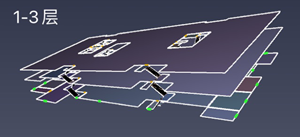 根據(jù)建筑圖紙上的參數(shù)設(shè)置樓層分別為0m、6.0m、7.7m(第二層的錯層)、11.1m、總計三層。參照導(dǎo)入的CAD文件作為模板,定義地板、門(內(nèi)門和出口)、墻、樓梯等。為了近乎真實模擬疏散情況,地板僅定義人群可活動的區(qū)域,電梯、內(nèi)墻障礙物等在模型中不給予定義。各房間的墻、各房間的面積大小、門的寬度以及樓梯的設(shè)置完全依照建筑設(shè)計圖建立。考慮到真實性,第二層和頂層的錯層也設(shè)定了不同的相對高度,并用樓梯連接相連樓層。