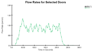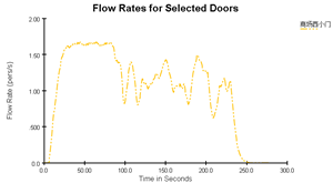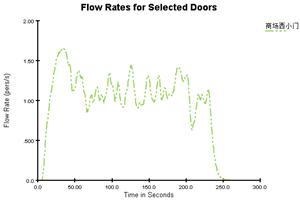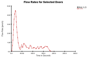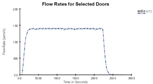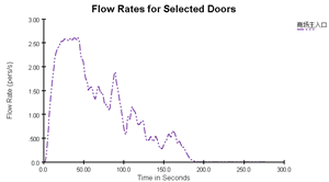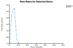 由于商城中人員密度大,疏散速度與路徑和門的大小有較大關(guān)系,因此我們用Pathfinder提供的出入口流通率的數(shù)據(jù)進行研究。