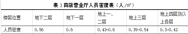 表3商店營業(yè)廳人員密度表(人/㎡)