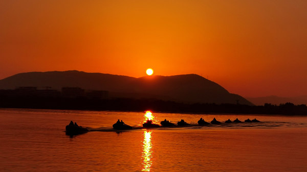 作品簡介:漢中市消防救援支隊進(jìn)行水域救援訓(xùn)練,夕陽下舟艇編隊行進(jìn),落日余暉,逆流而上。