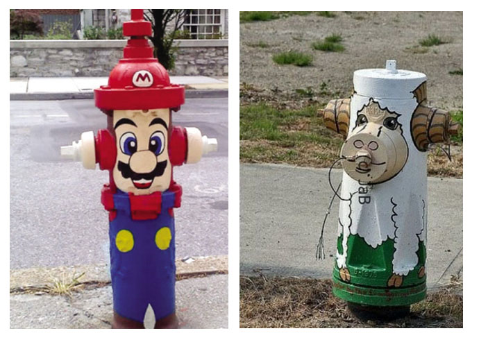 消防栓因其土氣不易引人注意外表,經常被人任意填埋、損壞,甚至被撬走當廢鐵賣。對于這些其貌不揚,一遇火災又至關重要的鐵坨坨,國內外的一些消防支隊對它們進行了創(chuàng)意的整容涂鴉,用色彩鮮艷的顏料,將動畫人物、游戲卡通人物、漫畫人物等畫到消防栓上,讓其變得可愛又醒目,提醒大家保護消防設施。