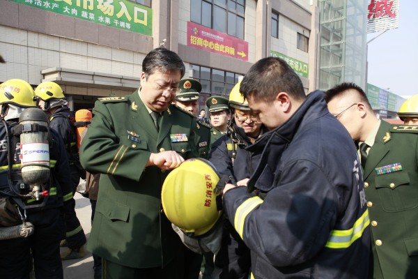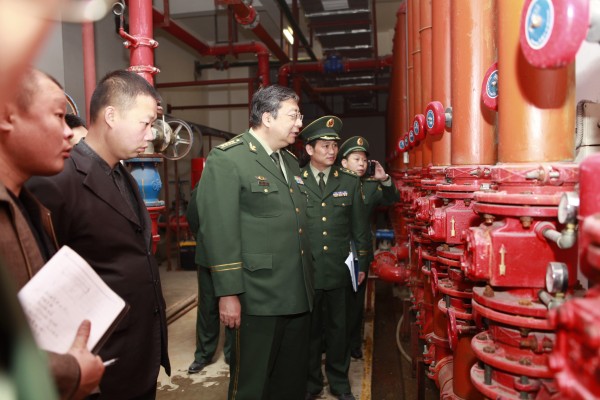 此次檢查對象為西安市和生國際食品交易中心,總建筑面積32萬平方米,含5萬噸超低溫冷庫、22萬平方米交易中心,是西安北郊地區(qū)典型的集農(nóng)產(chǎn)品大宗交易、海鮮水產(chǎn)冷藏分銷、商業(yè)辦公、超市餐飲和物流倉儲于一體的大型商貿(mào)流通綜合體。檢查開始前,周詳總隊(duì)長下達(dá)命令,緊急拉動(dòng)轄區(qū)中隊(duì)以該交易中心為對象開展實(shí)地滅火救援演練。隨后帶領(lǐng)檢查組由交易中心10樓頂層開始進(jìn)行逐層踏勘,先后深入大樓屋頂水箱間、排煙送風(fēng)機(jī)組、各個(gè)樓層的倉儲、經(jīng)營、辦公及施工區(qū)域、電梯前室、疏散通道和底層消防水池、消防泵房、消防控制室等重點(diǎn)部位,對各類消防設(shè)施運(yùn)行情況進(jìn)行詳細(xì)檢查,現(xiàn)場測試了消防水箱管網(wǎng)、室內(nèi)消火栓靜壓力、排煙風(fēng)機(jī)、正壓送風(fēng)設(shè)備自動(dòng)手動(dòng)開啟、裝飾裝修、保溫材料燃燒性能、自動(dòng)噴水系統(tǒng)末端試水、火災(zāi)自動(dòng)報(bào)警系統(tǒng)聲光電報(bào)警、防火分區(qū)劃分、防火卷簾開啟、控制室人員操作和消防設(shè)施系統(tǒng)聯(lián)動(dòng),以及單位日常消防管理情況,并就發(fā)現(xiàn)的建筑消防設(shè)施設(shè)計(jì)、施工、管理中存在的問題進(jìn)行了專業(yè)細(xì)致的講解。在觀看了轄區(qū)中隊(duì)的演練后,周詳總隊(duì)長就預(yù)案制定、戰(zhàn)斗部署、火場安全、主要危險(xiǎn)、人員搜救等環(huán)節(jié),對中隊(duì)指揮員進(jìn)行了現(xiàn)場提問,并檢查了戰(zhàn)斗員的隨身器材及保暖情況。