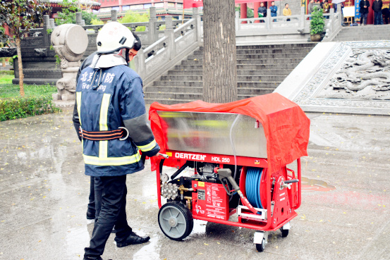 隨后,相關(guān)技術(shù)人員分別對油盆火和柴堆火,在寺院的空地上進(jìn)行了滅火演示。捐贈(zèng)方技術(shù)人員還為寺院僧人作了詳細(xì)的操作指導(dǎo),不少僧人和參觀人員親自動(dòng)手實(shí)際操作了一番。