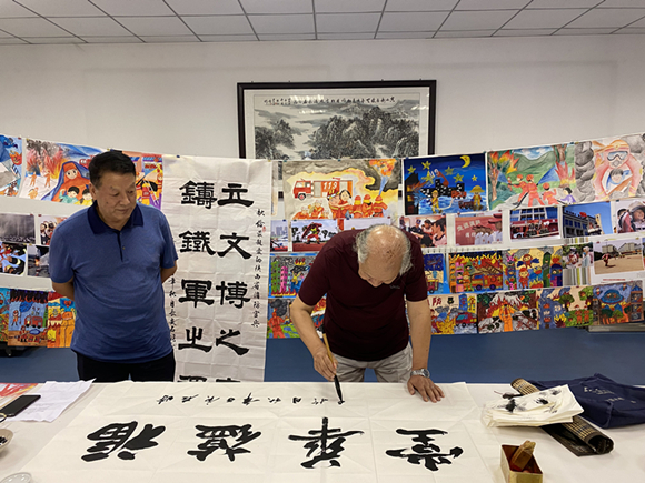 賈西海會(huì)長(zhǎng)、卞建峰秘書(shū)長(zhǎng)親臨活動(dòng)現(xiàn)場(chǎng)觀摩,并代表省消防協(xié)會(huì)對(duì)書(shū)法家參與消防、關(guān)注消防、支持消防事業(yè)表示感謝。