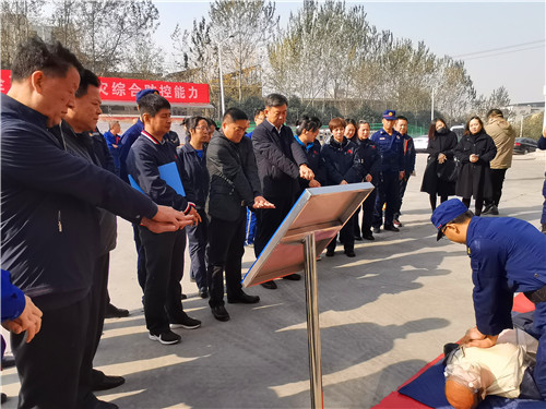 在現(xiàn)場(chǎng),參加活動(dòng)的全體干部職工參觀學(xué)習(xí)了火災(zāi)事故案例宣傳展板和展示的消防器材裝備,工作人員為大家講解了滅火器材的操作使用方法和初起火災(zāi)撲救的注意事項(xiàng),發(fā)放了感煙火災(zāi)探測(cè)器、少兒繪畫大賽獲獎(jiǎng)作品集《消防情科普夢(mèng)》等宣傳品。消防隊(duì)員則為大家表演了擒敵拳、破拆器材操作、心肺復(fù)蘇急救、綜合堵漏操等業(yè)務(wù)技能,消防隊(duì)員用整齊的動(dòng)作、嫻熟的技術(shù)、過硬的素質(zhì)和頑強(qiáng)的意志贏得大家的陣陣掌聲,特別是在心肺復(fù)蘇急救項(xiàng)目,大家邊聽還邊比劃。