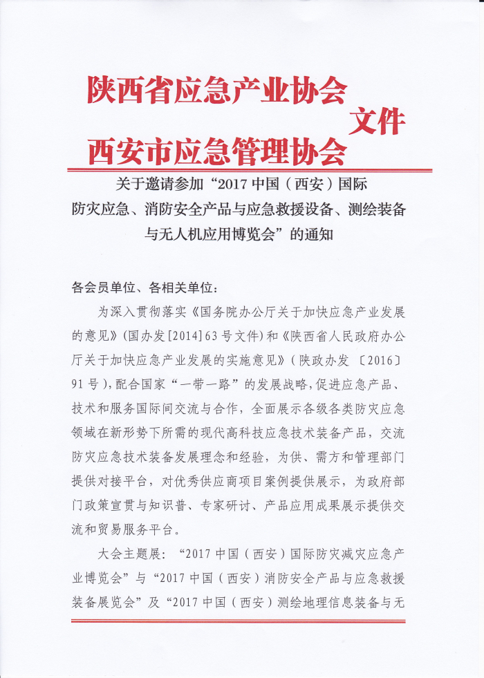 關(guān)于邀請參加“2017中國(西安)國際防災(zāi)減災(zāi)應(yīng)急產(chǎn)業(yè)博覽會(huì)”的通知