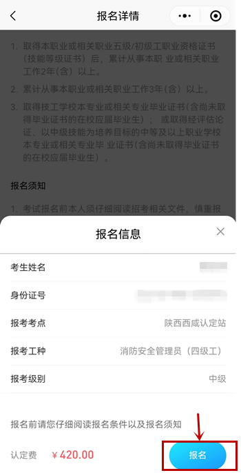 9、確認(rèn)報(bào)名信息無誤后,再次點(diǎn)擊“報(bào)名”