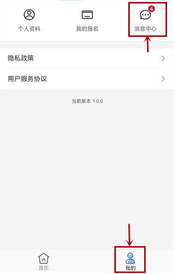 10、點(diǎn)擊“我的”、“消息中心”可以查看報(bào)名狀態(tài)。
