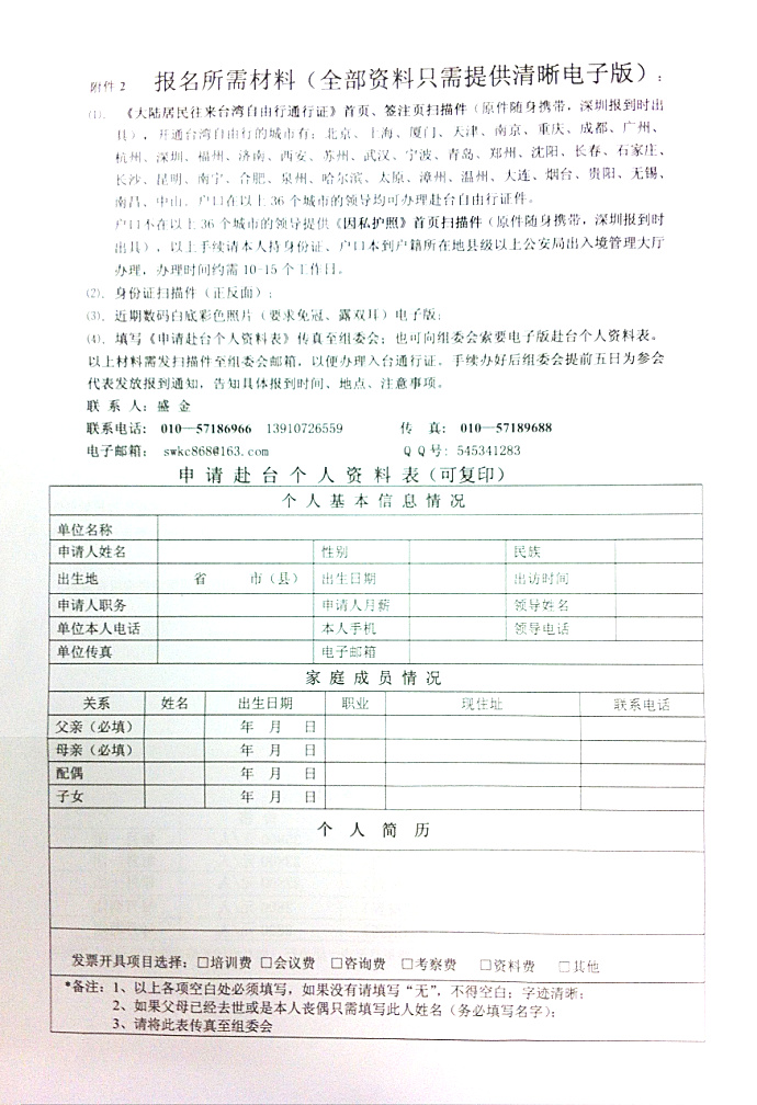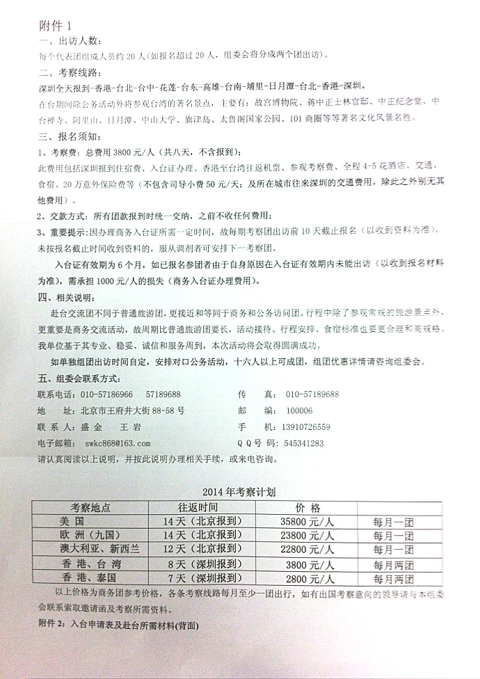 關(guān)于組織社會組織、民間團體赴臺灣交流考察團的邀請函