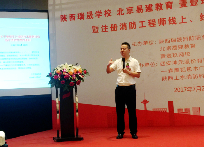 為提升社會消防專業(yè)技術人才的質量,提高我省注冊消防工程師考試通過的數量,7月28日上午,陜西瑞晟消防職業(yè)技能培訓學校,聯合北京易建教育、壹壹玖網校,召開了我省首次針對于注冊消防工程師的培訓推介新聞發(fā)布會。我會賈西海會長和卞建峰秘書長出席會議,易建教育、壹壹玖網校創(chuàng)始人、董事長段永輝,陜西瑞晟消防職業(yè)技能培訓學校校長李堅斌以及200多位媒體和行業(yè)內優(yōu)秀企業(yè)代表參加了會議。