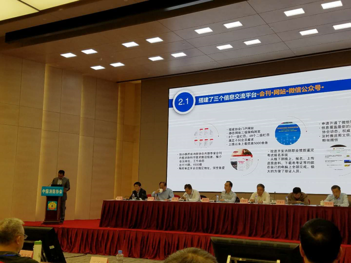 2017年11月28日,中國消防協(xié)會(huì)第六屆四次理事會(huì)暨科學(xué)技術(shù)年會(huì)在廣西南寧召開。中國消防協(xié)會(huì)會(huì)長陳偉明、公安部消防局副局長瓊色、中國消防協(xié)會(huì)副會(huì)長冷俐、陳飛、王鐵民、朱力平、尹俊士等領(lǐng)導(dǎo)出席會(huì)議。來自各省級(jí)消防協(xié)會(huì)的會(huì)長、秘書長,消防部隊(duì)、科研院所、消防企業(yè)的論文獲獎(jiǎng)作者等兩百余位代表參加了本次會(huì)議。我會(huì)會(huì)長賈西海、秘書長卞建峰代表陜西省參加了此次會(huì)議,會(huì)長賈西海代表陜西省消防協(xié)會(huì)作了經(jīng)驗(yàn)介紹。