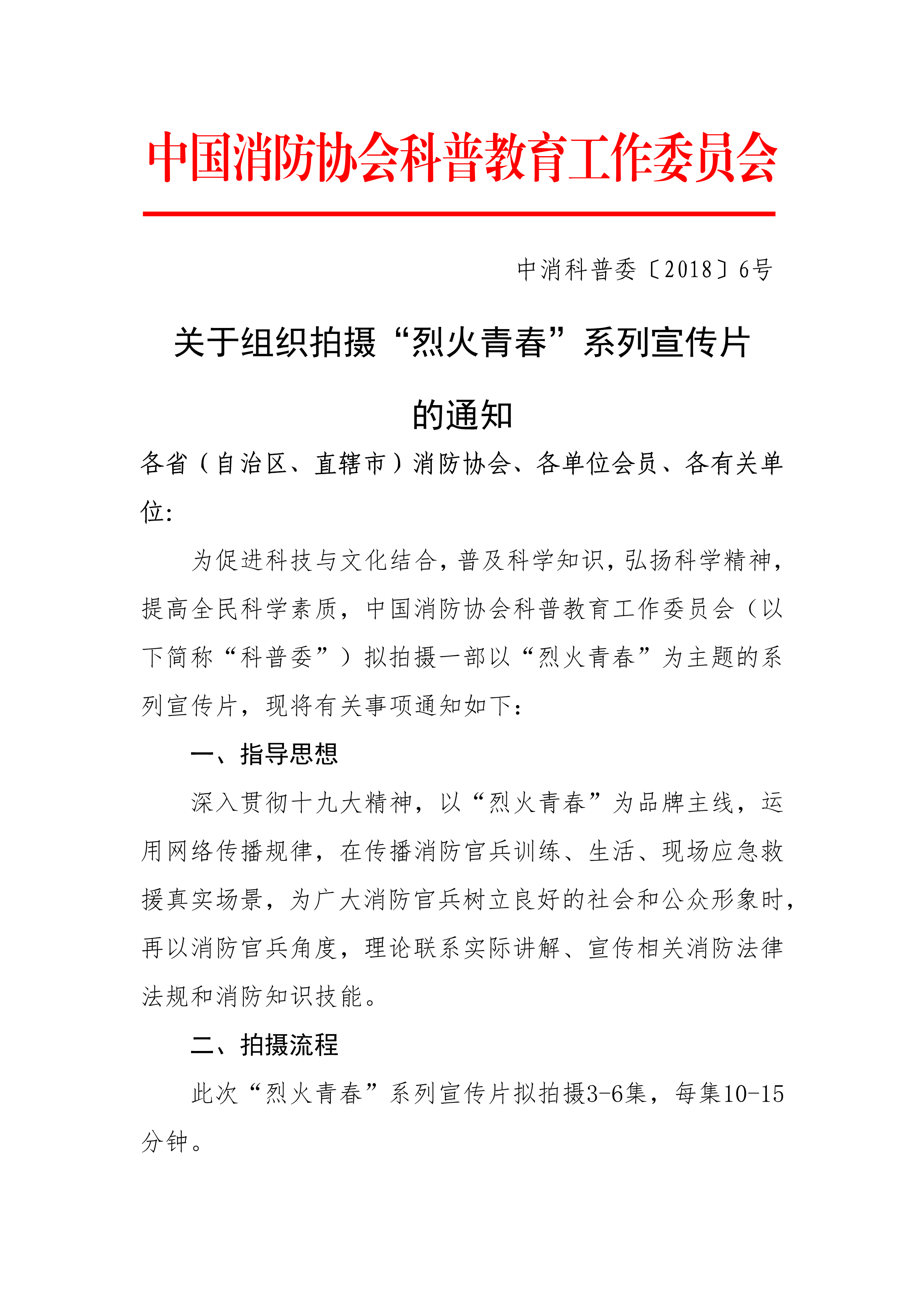 轉(zhuǎn)發(fā)《關(guān)于組織拍攝“烈火青春”系列宣傳片的通知》