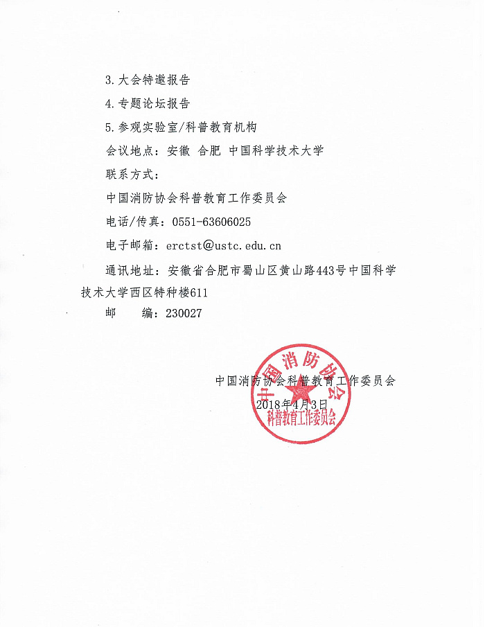 轉(zhuǎn)發(fā)《關(guān)于召開“中國(guó)消防協(xié)會(huì)科普教育工作委員會(huì)第七屆委員會(huì)二次會(huì)議暨全國(guó)消防科普理論與技術(shù)研討會(huì)”的通知》