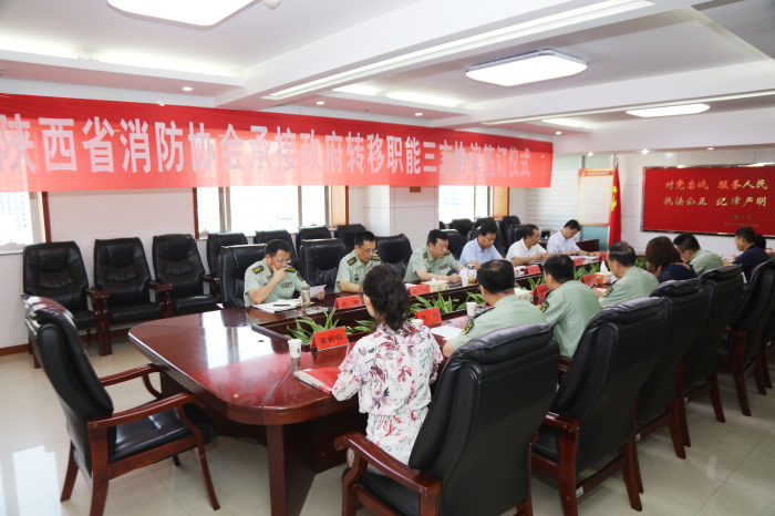 9月3日上午,陜西省消防協(xié)會承接政府轉(zhuǎn)移職能三方協(xié)議簽訂儀式在省消防總隊成功舉行。省科協(xié)黨組成員、副主席黨廣錄,省消防總隊黨委書記、政委張飛軍,省消防協(xié)會會長賈西海出席儀式并講話。簽訂儀式由省消防總隊總工程師張明主持。省科協(xié)學(xué)會學(xué)術(shù)部副部長田世坡,省消防總隊防火監(jiān)督部部長吳鋼,省消防協(xié)會秘書長卞建峰及三方其他相關(guān)人員20余人參加了儀式。