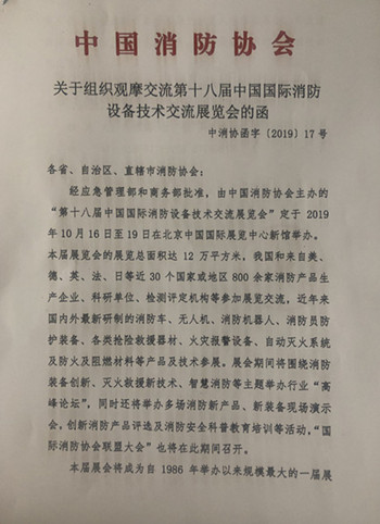 附件: 1.《關于組織觀摩交流第十八屆中國國際消防設備技術交流展覽會的函》