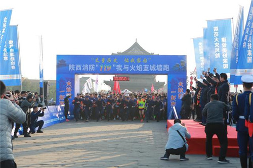 隨后,在群眾期待和歡呼聲中,最激動(dòng)人心的一刻到來(lái)了!“丈量歷史 佑我家園”—我與火焰藍(lán)11.9公里城墻跑參賽運(yùn)動(dòng)員2400人全部就位,“啪!”隨著開(kāi)跑的一聲槍響,參賽選手萬(wàn)箭離弦般起跑了!強(qiáng)力拉開(kāi)了119全民消防宣傳月活動(dòng)帷幕!