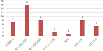 分析北院門歷史文化街區(qū)2016-2018年間發(fā)生的47起火災(zāi)。從火災(zāi)發(fā)生原因來(lái)看主要包括油鍋起火、電氣設(shè)備故障、電氣線路故障、生活用火不慎、吸煙、遺留火種等,其中電氣火災(zāi)起數(shù)占比為34%,其次為電氣線路故障、遺留火種和油鍋起火,分別占火災(zāi)起數(shù)17%,電氣火災(zāi)和油鍋起火是該區(qū)域的主要火災(zāi)原因。