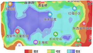 用地性質(zhì)和功能方面,按照功能的重要性分為重點(diǎn)地區(qū)、一般地區(qū)和隔離疏散場(chǎng)所,火災(zāi)危險(xiǎn)性打分分別為4分、2分和0分;人口密度參考相關(guān)規(guī)范和國(guó)內(nèi)其他城市老城區(qū)人口密度情況,分為高、中、低等三個(gè)等級(jí),高密度區(qū)位200人/公頃以上,打分為3分,中密度區(qū)為115-200人/公頃,打分為2分,低密度區(qū)為115人/公頃以下,打分為1分;建筑密度主要參考《陜西省城市規(guī)劃管理技術(shù)規(guī)定》(陜建發(fā)【2017】473號(hào)),建筑密度低于30%為低密度區(qū),打分為1分,建筑密度30%-60%為中密度區(qū),打分為2分,建筑密度大于60%為高密度區(qū),打分為3分;歷史文化價(jià)值分為高、中、低三個(gè)等級(jí),高價(jià)值區(qū)主要包括市級(jí)以上文保單位,打分為3分,中價(jià)值區(qū)為歷史文化街區(qū)核心區(qū)的其他地區(qū),打分為2分,低價(jià)值區(qū)為歷史文化街區(qū)建設(shè)控制區(qū)的其他地區(qū),打分為1分;人流熱力圖主要參考百度地圖的熱力圖,分為高、中、低三個(gè)等級(jí),打分分別為3分、2分和1分。賦值越高火災(zāi)危險(xiǎn)性越大,反之風(fēng)險(xiǎn)性則越小。