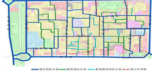 拆除私搭亂建和不規(guī)范的廣告招牌、裝飾物等,將主要街巷拓寬至4-6米以上,并保持凈高4米以上的空間,形成城市道路可以通行普通消防車,主要街巷可以通行微型消防車的消防車通道體系。