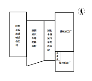 起火單位是陜西某汽車零配件銷售公司,主要經(jīng)營汽車配件,起火建筑為單層鋼結(jié)構(gòu)建筑,建筑面積2000平方米,南北長60米,東西長35米,從中間分隔后分為兩個庫房,其中靠東邊的庫房租賃給湖北十堰某汽車配件公司做庫房,剩余部分自己使用,東北側(cè)為某鈦板加工廠,東南側(cè)為某鈦棒打磨廠,西側(cè)為某鍛熱機械公司(見圖1)。其中陜西某汽車零配件公司和湖北十堰某汽車配件公司兩個庫房全部過火(見圖2)。鈦板加工廠,單層鋼結(jié)構(gòu),建筑面積1400平方米,主要經(jīng)營鈦板的切割,廠房西南角局部過火(見圖3)。某鈦棒打磨廠,單層鋼結(jié)構(gòu)建筑,建筑面積1000平方米,主要經(jīng)營鈦棒打磨,其單位西側(cè)與湖北十堰某汽車配件庫房緊挨的危廢庫房彩鋼板頂部過火(見圖4)。這4家企業(yè)之間僅使用單層鐵皮分隔。位于汽車配件庫房西側(cè)的某鍛熱機械設(shè)備有限公司,單層彩鋼板建筑,面積2800平方米,廠房東側(cè)彩鋼板局部過火。