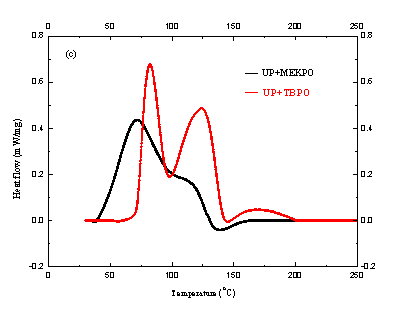 圖 5 混合比例為 3:1 的 UP 與 MEKPO(a)或 TBPO(b)的 DSC 圖
