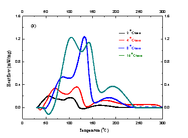 (2)第二組:比例為 3:1 的 UP 與硬化劑在 2,4,8 和 16oC/min的升溫速率下進(jìn)行測試,溫度范圍設(shè)定為 30–300oC。