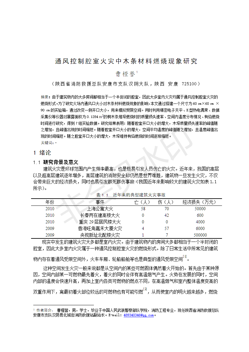 通風(fēng)控制腔室火災(zāi)中木條材料燃燒現(xiàn)象研究
