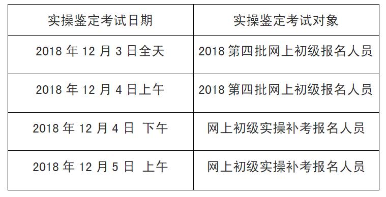 現(xiàn)將初、中、高級(jí)實(shí)操鑒定考試和實(shí)操補(bǔ)考時(shí)間安排公告如下: