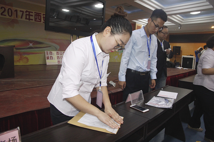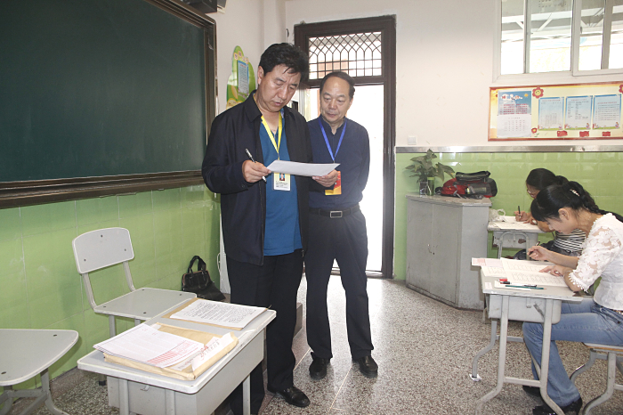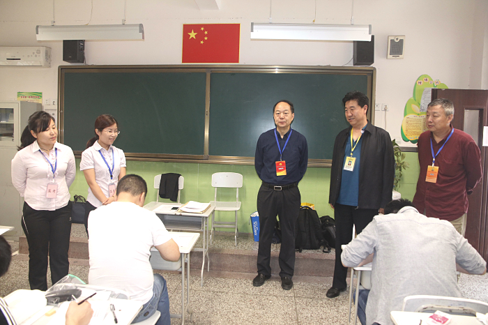 衛(wèi)傳淮副秘書長在考場督導時,仔細詢問了考場設置等情況,嚴格巡查了考風考紀,并對陜西考點的考試秩序表示了肯定。