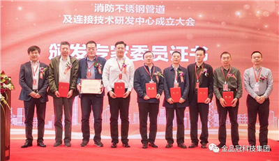 消防不銹鋼管道及連接技術(shù)研發(fā)中心是由中國建筑學(xué)會(huì)建筑給水排水研究分會(huì)、中國城鎮(zhèn)供水排水協(xié)會(huì)建筑給水排水分會(huì)批復(fù)成立的科研創(chuàng)新中心,經(jīng)過幾個(gè)月的精心籌備,正式在金品冠科技集團(tuán)有限公司正式成立掛牌。