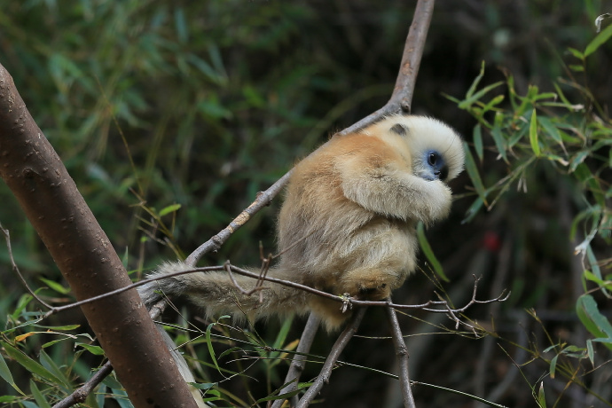 圖中,猴子處于逆?zhèn)裙猸h(huán)境,這種環(huán)境下,拍攝時(shí)應(yīng)根據(jù)情況增加曝光補(bǔ)償,使毛皮產(chǎn)生生動(dòng)的鑲邊效果。提前設(shè)置好機(jī)位,就能容易抓住精彩的瞬間,最簡(jiǎn)單的就是感光度設(shè)置為自動(dòng)AUTO,將拍攝模式設(shè)置為快門優(yōu)先,根據(jù)鏡頭的長(zhǎng)短和動(dòng)物的運(yùn)動(dòng)速度,可以將快門速度設(shè)置為200或2000不等。如下圖,小猴子的瞬間憨態(tài)被攝影師捕捉到了。
