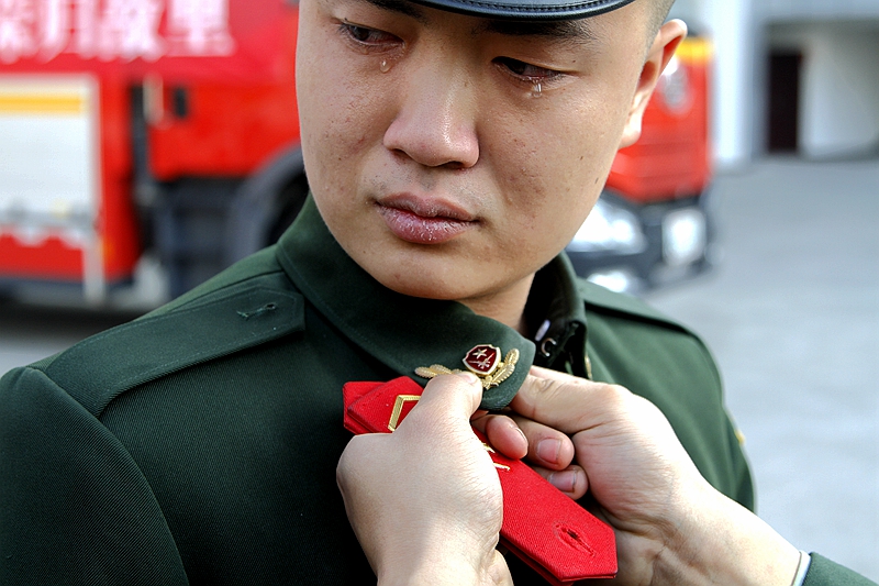 卸下了佩戴多年的肩章、領(lǐng)花,戴上了印有“光榮”字樣的紅花。向軍旅生涯道上一聲再見(jiàn),此時(shí)此刻,戰(zhàn)士們都已經(jīng)熱淚盈眶,22歲的重慶籍戰(zhàn)士吳坤建17歲就來(lái)到了廣元消防部隊(duì),在這片紅色的土地上駐守了五年。