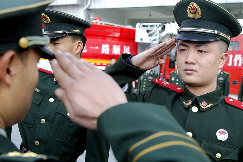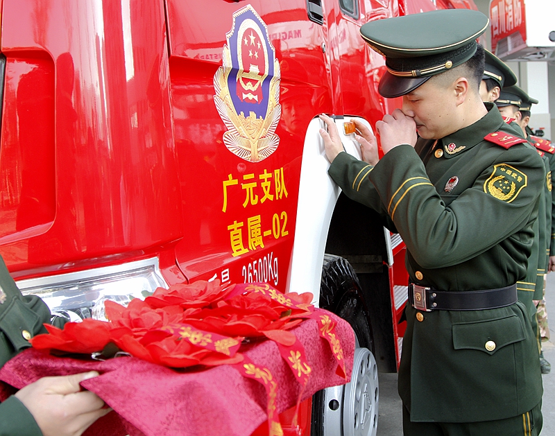 11月25日上午,在四川廣元消防支隊(duì)直屬中隊(duì)的紅色消防車上,隨處可見(jiàn)張貼的歡送老兵退伍的標(biāo)語(yǔ),廣播里反復(fù)播放著《駝鈴》、《鐵打的營(yíng)盤流水的兵》等歌曲,空氣中充滿了離愁別緒。隨著一聲莊嚴(yán)的口令聲,6名退伍老兵一起他們向自己深愛(ài)的警營(yíng)、向朝夕相處的領(lǐng)導(dǎo)、戰(zhàn)友獻(xiàn)上了最后一個(gè)軍禮。