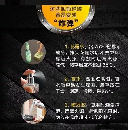 手機充電器放在插線板上長期不拔,易短路或高壓擊穿引發(fā)火災(zāi)。一些家用電器、常用的瓶瓶罐罐,都是潛在的“定時炸彈”,手機、空調(diào)、高壓鍋、微波爐、花露水、香水……使用不當可能爆炸,威脅人身安全!