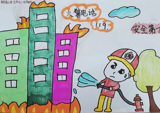 畫面描繪了消防指戰(zhàn)員叔叔,在火場英勇滅火的樣子,保障了人民的安全。