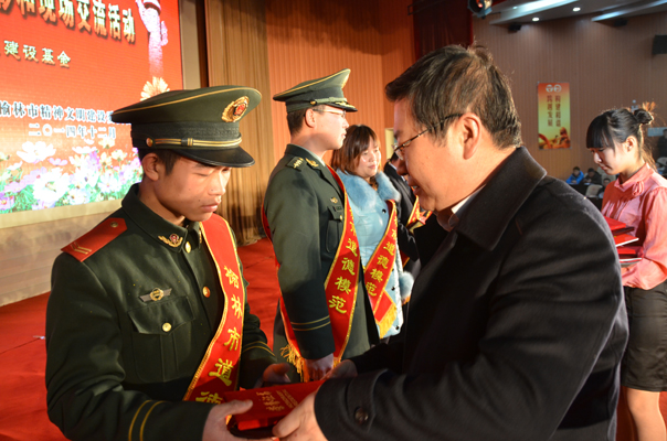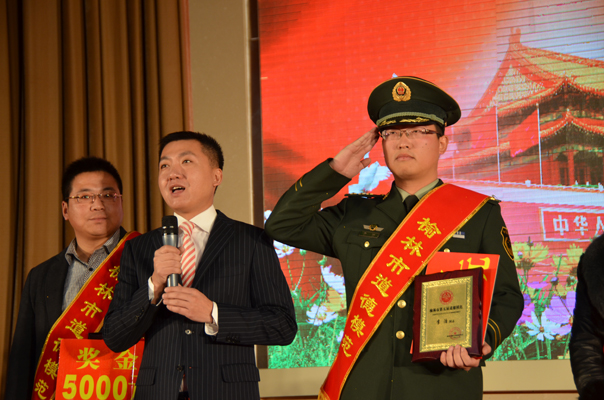 12月19日,榆林市第五屆道德模范、第二屆榆林好人表彰和現(xiàn)場交流活動(dòng)頒獎(jiǎng)典禮在市委大禮堂隆重舉行,榆林市公安消防支隊(duì)綏德縣消防中隊(duì)中隊(duì)長李治、戰(zhàn)士肖有運(yùn)分別被授予榆林市第五屆道德模范“敬業(yè)奉獻(xiàn)”榮譽(yù)稱號(hào)。榆林市委書記胡志強(qiáng)在頒獎(jiǎng)過程中,親切慰問了兩名獲獎(jiǎng)?wù)卟⒎Q贊:消防官兵好樣的,向你們學(xué)習(xí)。