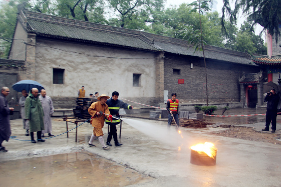 隨后,相關(guān)技術(shù)人員分別對油盆火和柴堆火,在寺院的空地上進(jìn)行了滅火演示。捐贈(zèng)方技術(shù)人員還為寺院僧人作了詳細(xì)的操作指導(dǎo),不少僧人和參觀人員親自動(dòng)手實(shí)際操作了一番。