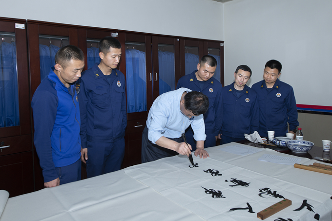 座談交流會(huì)中,高新區(qū)消防救援大隊(duì)教導(dǎo)員李亞林詳細(xì)介紹了大隊(duì)歷史沿革、基本情況、人員結(jié)構(gòu)、隊(duì)站建設(shè)、以及近年來(lái)的執(zhí)勤備戰(zhàn)等情況,并對(duì)協(xié)會(huì)的慰問(wèn)關(guān)心表示感謝。會(huì)長(zhǎng)賈西海在講話中指出:這次活動(dòng)是貫徹落實(shí)黨中央“走進(jìn)基層、調(diào)查研究、共謀發(fā)展”決策部署的具體實(shí)踐;是向長(zhǎng)年奮戰(zhàn)在防火、滅火一線消防指戰(zhàn)員的關(guān)切慰問(wèn);更想通過(guò)藝術(shù)家的筆墨、鏡頭向社會(huì)傳遞消防指戰(zhàn)員恪盡職守、英勇頑強(qiáng)、無(wú)私奉獻(xiàn)的精神,進(jìn)一步全面提升全民消防安全意識(shí),共創(chuàng)和諧美好家園。