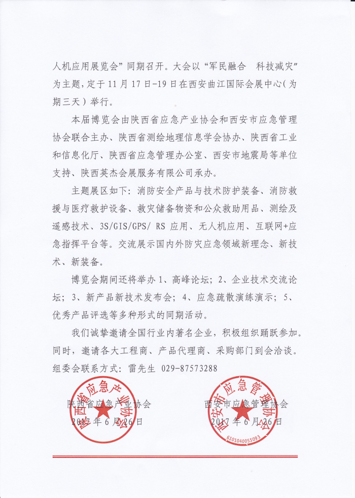 關(guān)于邀請參加“2017中國(西安)國際防災(zāi)減災(zāi)應(yīng)急產(chǎn)業(yè)博覽會(huì)”的通知