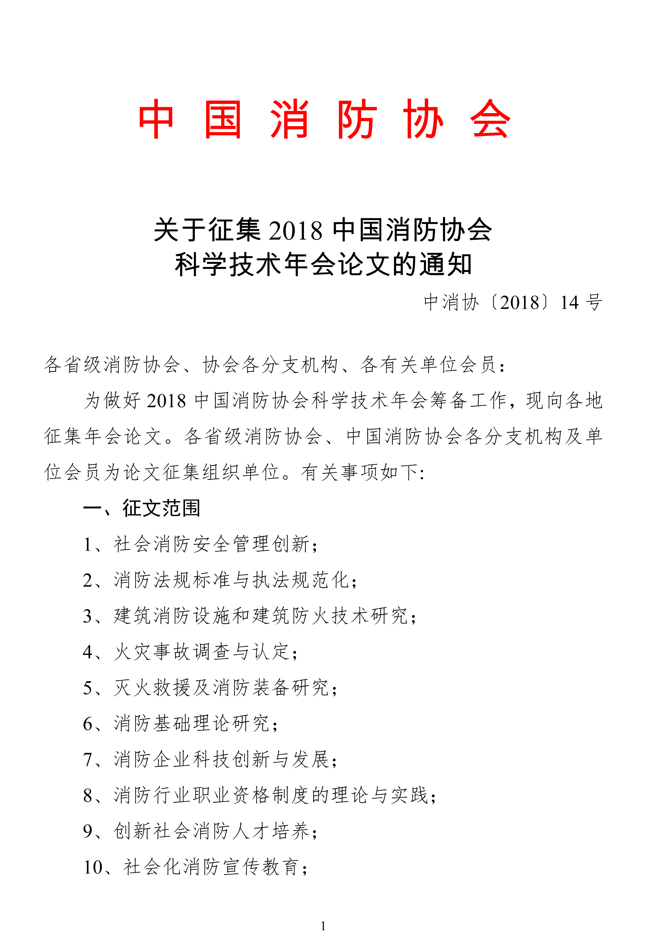 現(xiàn)將中國(guó)消防協(xié)會(huì)《關(guān)于征集2018中國(guó)消防協(xié)會(huì)科學(xué)技術(shù)年會(huì)論文的通知》轉(zhuǎn)發(fā)你們,望各單位根據(jù)要求,結(jié)合工作實(shí)際,于2018年4月20日前將本單位的論文電子版及“2018中國(guó)消防協(xié)會(huì)科學(xué)技術(shù)年會(huì)論文征集匯總表”(用Excel格式填寫),發(fā)送至陜西省消防協(xié)會(huì)科普教育工作委員會(huì)郵箱,并電話告知。