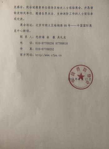 2.2019中國國際消防設(shè)備技術(shù)交流展覽會”邀請卡