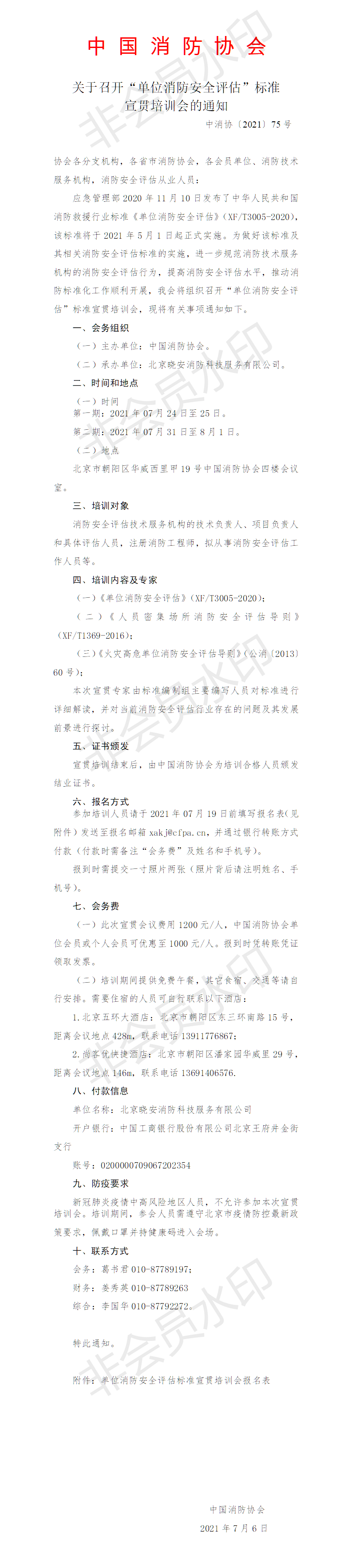 現(xiàn)將中國消防協(xié)會《關(guān)于召開“單位消防安全評估”標準 宣貫培訓會的通知》轉(zhuǎn)發(fā)你們,望各單位結(jié)合各自情況自愿參加。