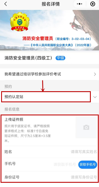 (3)、點(diǎn)擊“上傳證件照”上傳個(gè)人證件照片。(注意:照片為標(biāo)準(zhǔn)一寸白底免冠證件照)