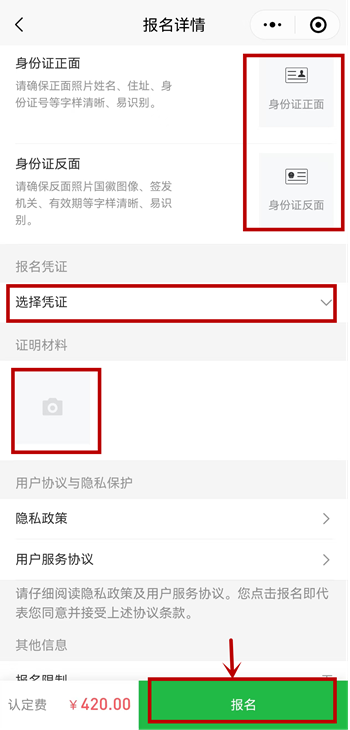 5、上傳身份證正面和反面。