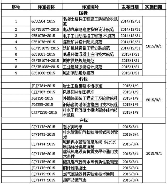 2015年9月開始實施的工程建設(shè)標(biāo)準(zhǔn)詳細
