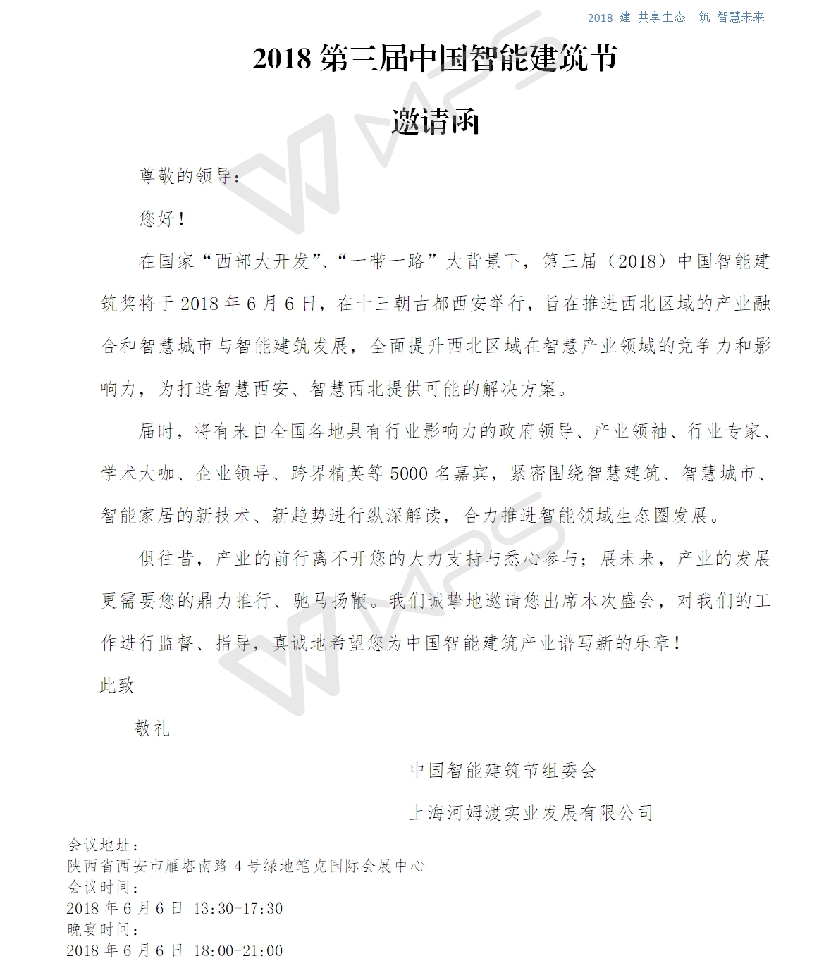 在國(guó)家“西部大開發(fā)”、“一帶一路”大背景下,第三屆(2018)中國(guó)智能建筑節(jié)將于2018年6月6日,在十三朝古都西安舉行,旨在推進(jìn)西北區(qū)域的產(chǎn)業(yè)融合和智慧城市與智能建筑的發(fā)展,全面提升西北區(qū)域在智慧產(chǎn)業(yè)領(lǐng)域的競(jìng)爭(zhēng)力和影響力,為打造智慧西安、智慧西北提供可能的解決方案。